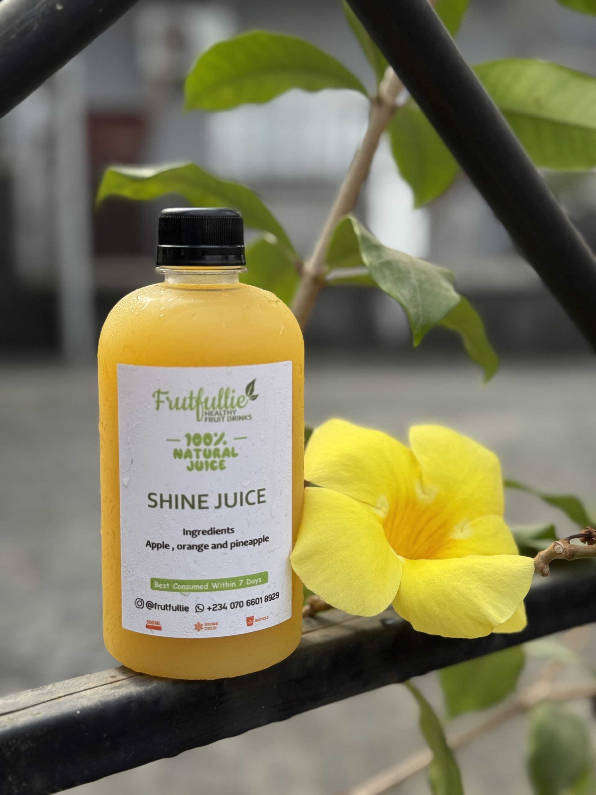Bright, juicy, and irresistibly refreshing—Frutfullie’s Shine Juice is your daily dose of sunshine in a bottle. Crafted from a radiant blend of apple, orange, and pineapple, this immune-boosting juice is packed with vitamin C, antioxidants, and natural sweetness to keep you energized and glowing all day long. Whether you’re starting your morning or recharging mid-day, Shine Juice brings a crisp, tropical burst that uplifts your body and mood—naturally.